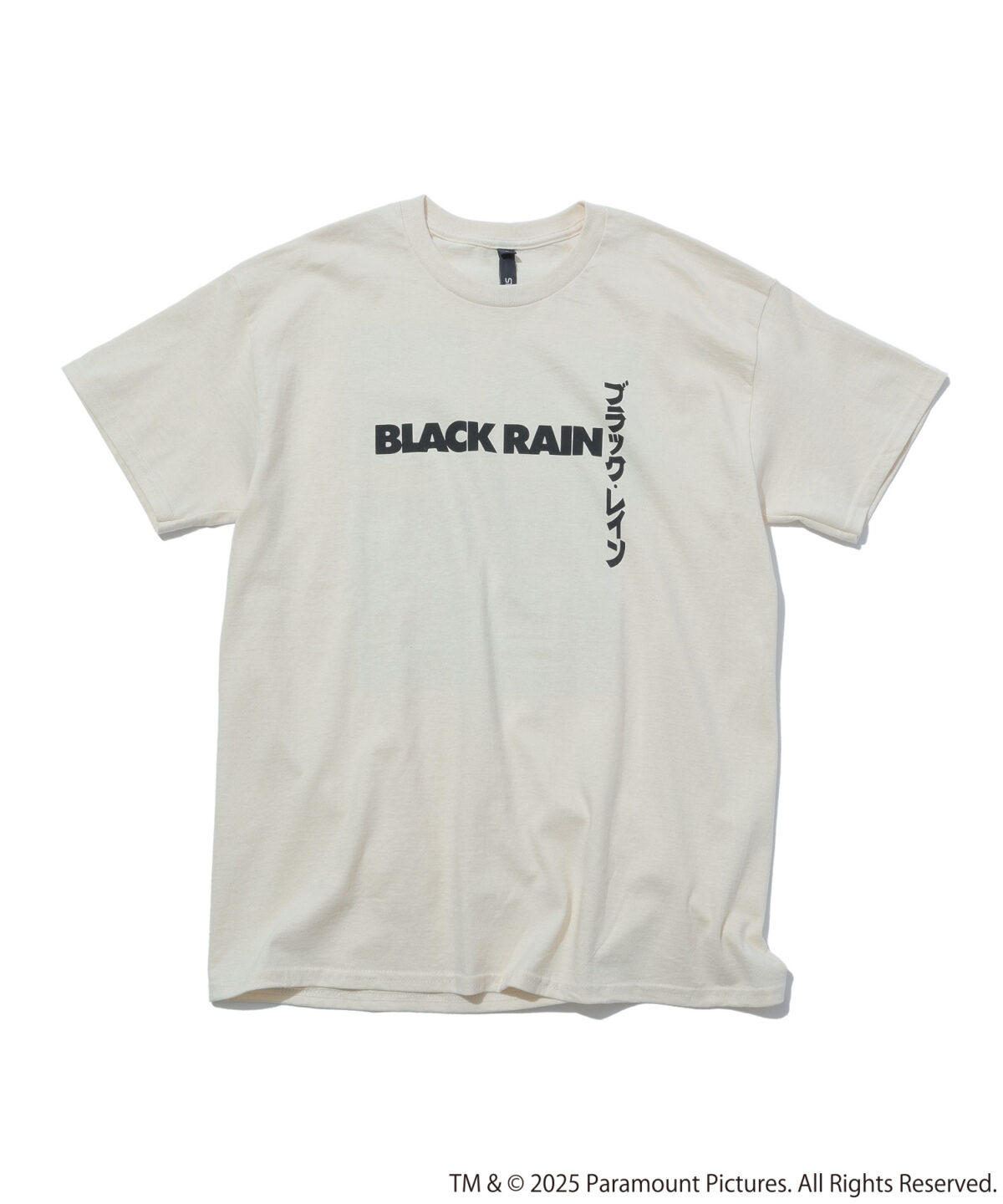 今回はTシャツ3型を展開。1つ目は、フロントに「BLACK RAIN」のロゴを大胆にプリント。バックには松田優作と高倉健の出演シーンを対照的に切り取った写真がプリントされている。