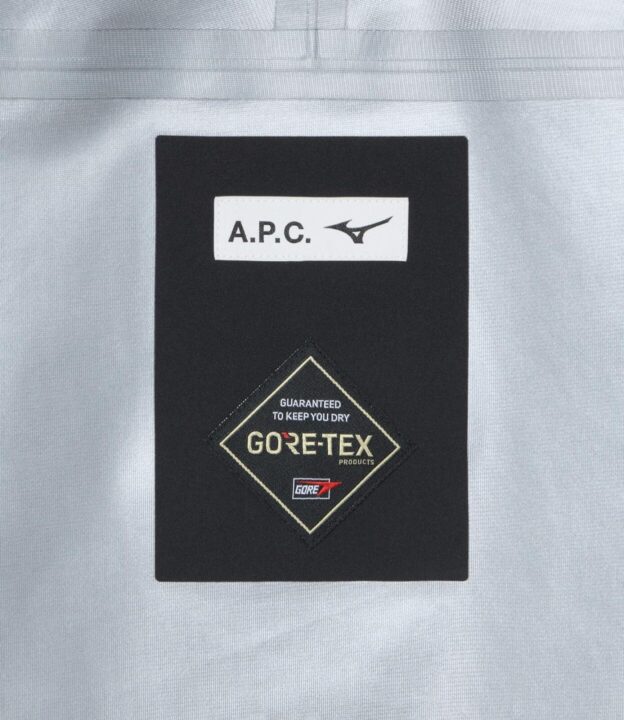 2022年10月、2023年9月、2024年9月と継続的にコラボレーションを行っているA.P.C.とミズノ。コラボレーション第4弾となる今回は、優れた防水透湿性と耐久性が魅力のゴアテックス(GORE-TEX)素材を用いた「ゴアテックス 3レイヤーフィールドシェルジャケット」がラインナップする。