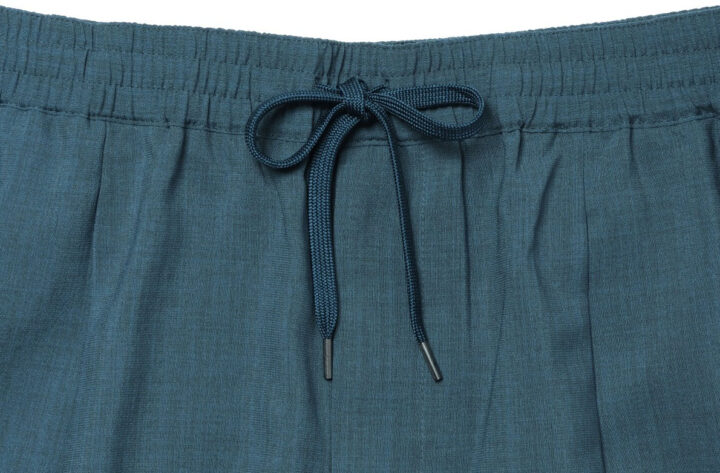 カラーはネイビー、ブルー、チャコールグレー、ライトグレー、サイズはS~LLの全4サイズ。ウエストは、サイズ調整可能なドローコードとゴム仕様。