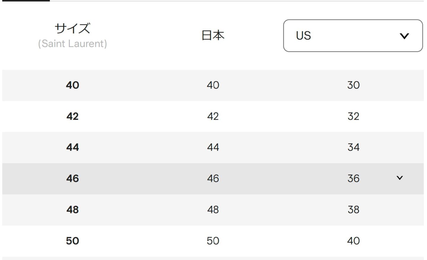 イタリア表記の50はLサイズだし US表記の40はLサイズ