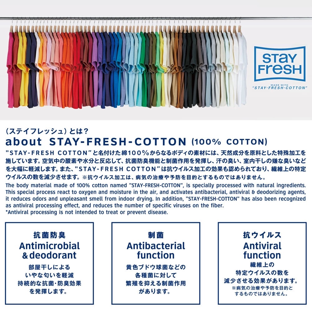 一般的なTシャツ生地のイメージで、夏場は涼しく寒い季節ではアンダーウェアとして使用でき、通年活躍する汎用性の高い生地の厚さです。